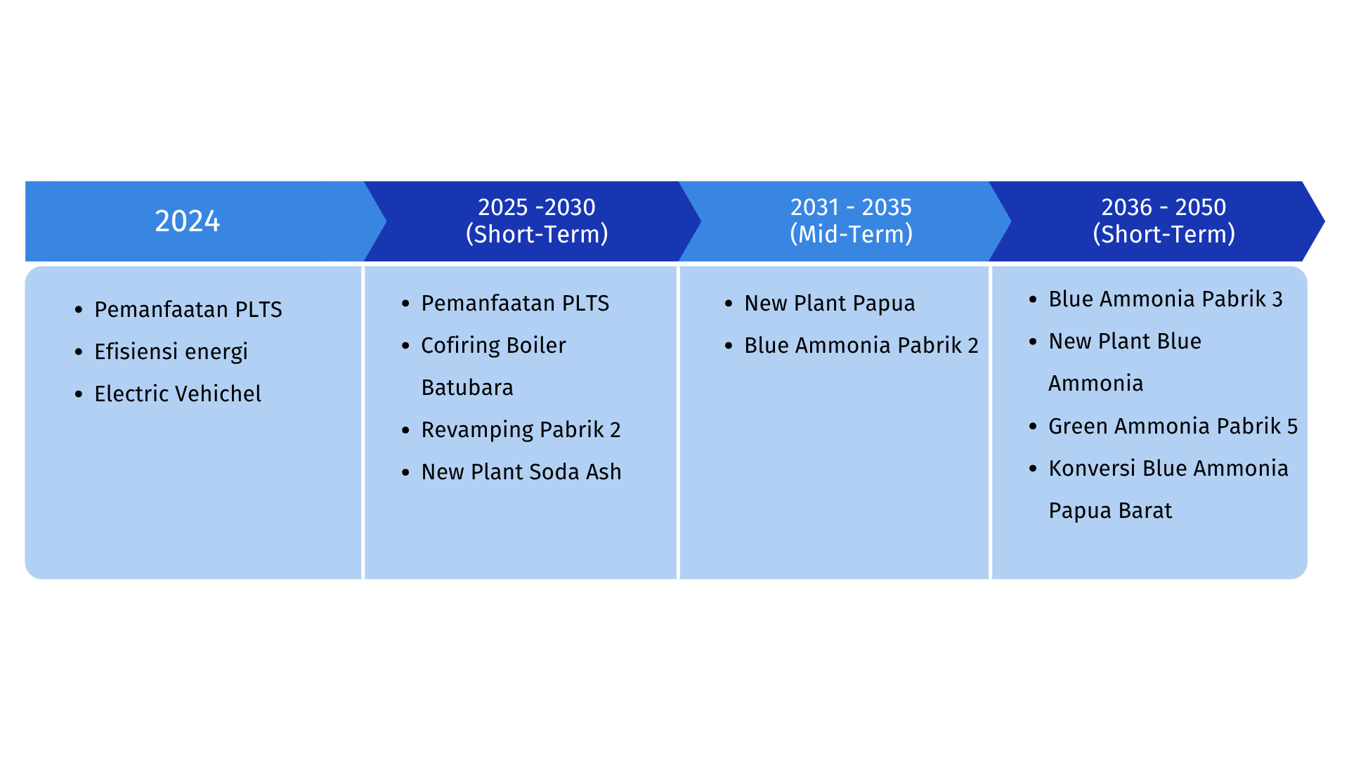 Pupuk Kaltim telah menyusun roadmap dekarbonisasi jangka panjang sebagai panduan strategis untuk menurunkan emisi secara bertahap dan berkelanjutan hingga mencapai Net Zero Emission pada tahun 2050. Roadmap ini dirancang dengan mempertimbangkan perkembangan teknologi rendah karbon, peningkatan efisiensi energi, pemanfaatan energi terbarukan, serta inisiatif offset karbon. Melalui langkah ini, upaya dekarbonisasi Pupuk Kaltim diharapkan tetap konsisten dengan target NDC nasional dan sejalan dengan komitmen global dalam Paris Agreement.
